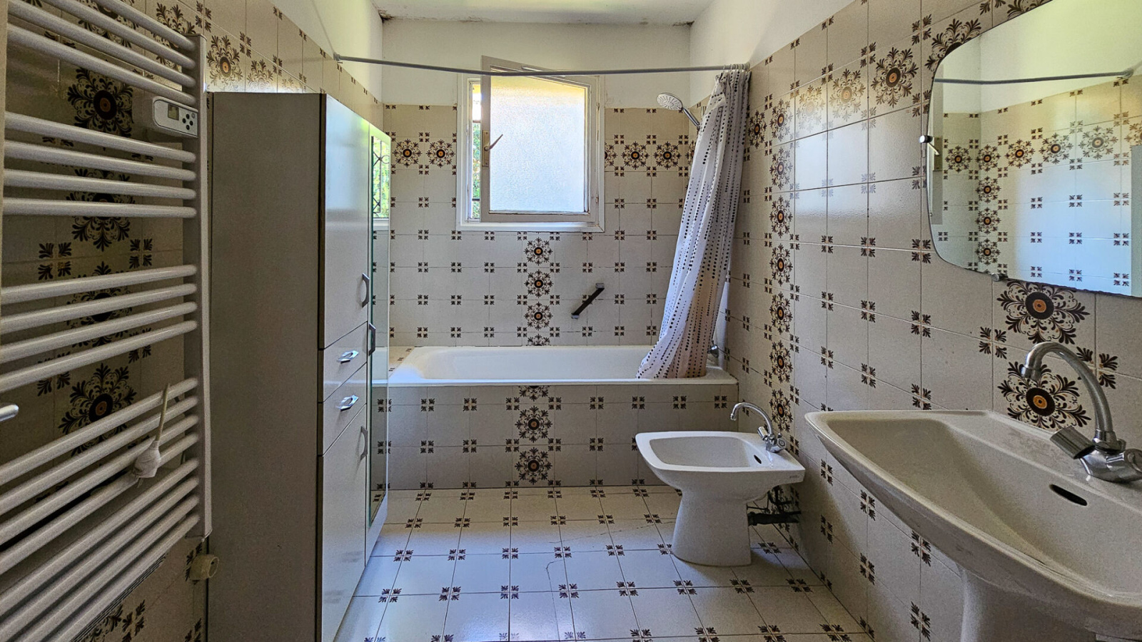 HYERES OUEST - BEAUVALLON / FENOUILLET - TRAVAUX DE RENOVATION ET AMENAGEMENTS A PREVOIR - Vvilla de plain-pied édifiée en 1978 sur sa parcelle arborée de 1507m2. Elle se compose comme suit : - Une habitation T4 de 85m2 en plain-pied comprenant une entrée, séjour ouvrant sur terrasse, cuisine avec cellier attenant, 3 chambres, salle de bain et WC séparé - Un garage de 19,5m2 - combles 37m2 aménageables. Terrain piscinable - cabanon et puits. Des travaux de rénovation ont été entamés et seront à poursuivre.