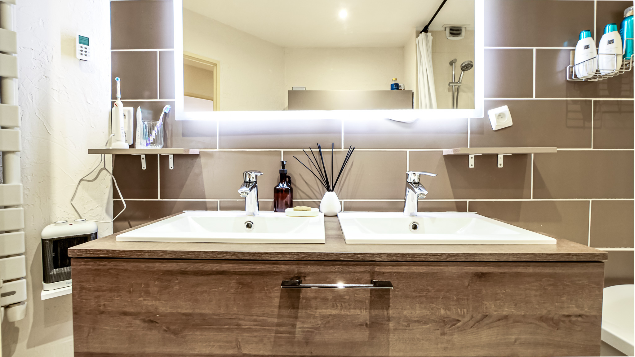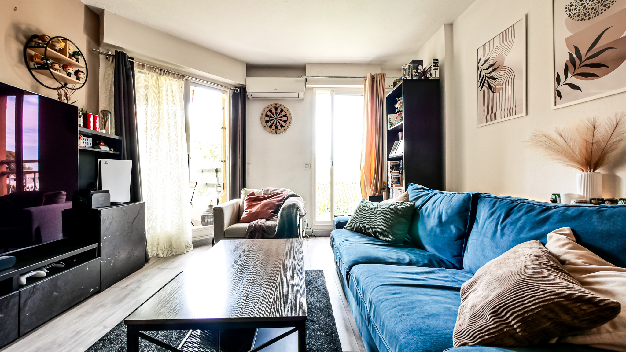 Le logement a bénéficié d’une rénovation complète : Double vitrage, climatisation réversible, sol uniforme, cuisine, salle de bain, volets roulants électriques, store banne.