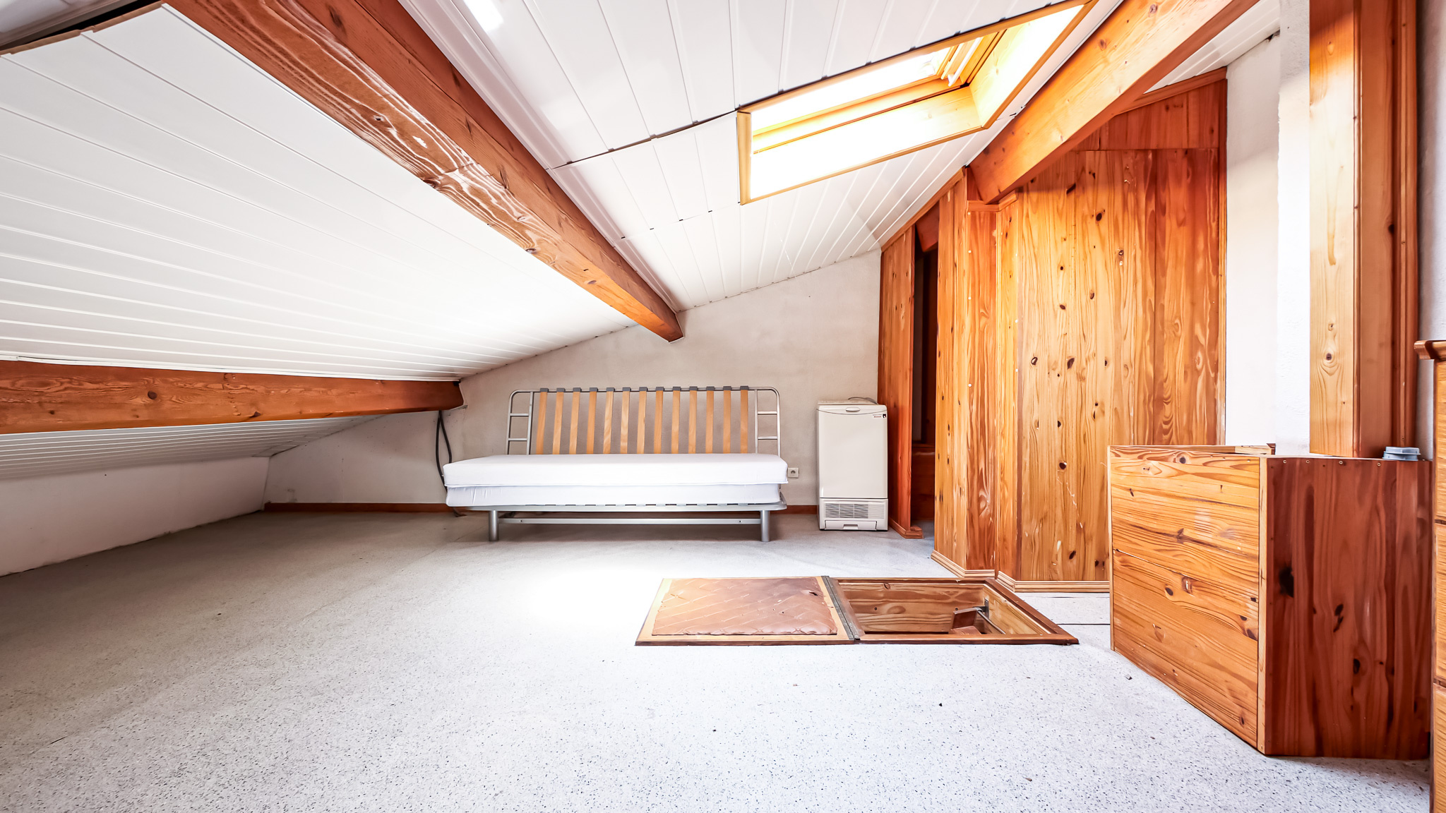 Accès aux combles depuis l'appartement, ces derniers équipés d'un cabinet de toilette, éclairés par un velux.
