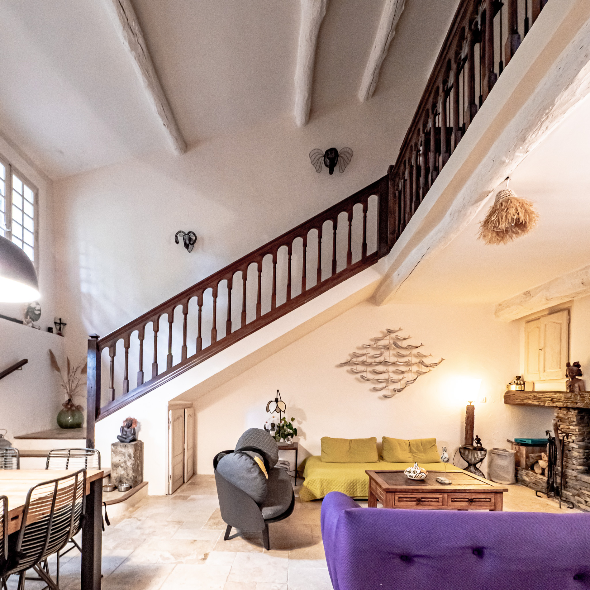 Au cœur d’un hameau empreint d’authenticité, autour d’une placette ombragée de platanes, cette propriété se distingue par ses volumes généreux et son atmosphère chaleureuse.